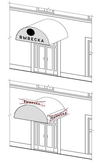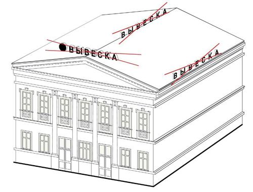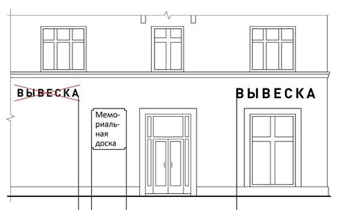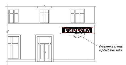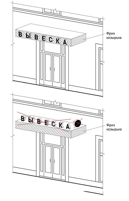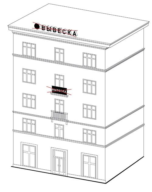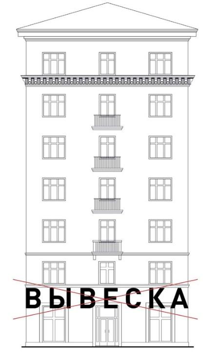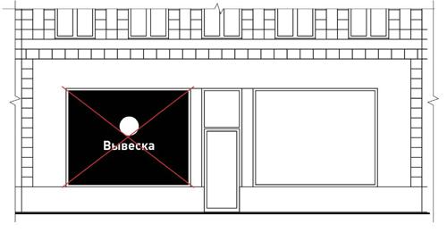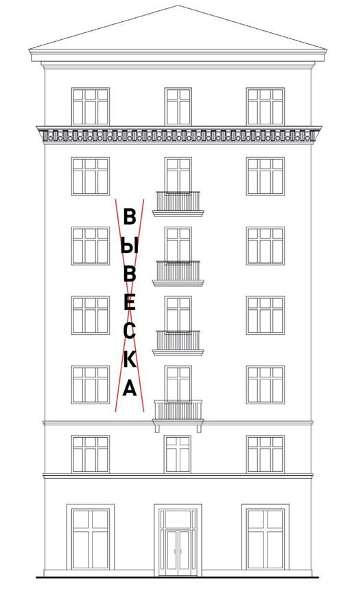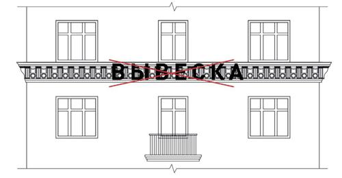 Внимание! Размещение вывесок на архитектурных деталях не допускается!