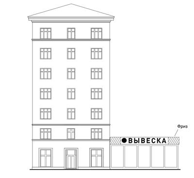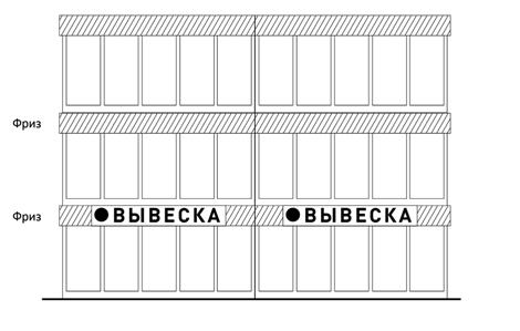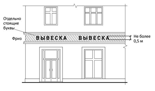 При наличии на фасаде объекта фриза настенная конструкция размещается исключительно на фризе, на всю высоту фриза.