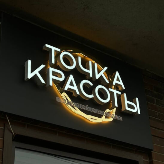 Буквы со световыми бортами хорошо сочетаются с другими видами подсветки: световые борта + световая лицевая поверхность, световые борта + световой задник, либо только световые борта.